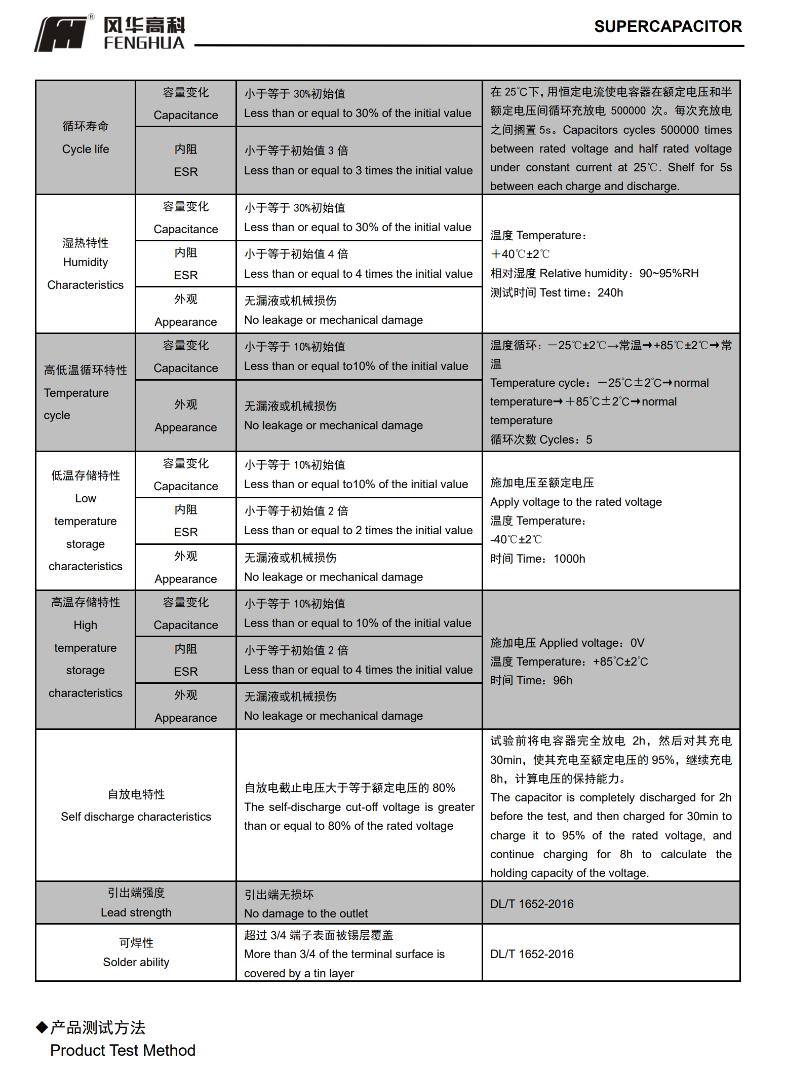 ■高温系列圆柱型超级电容器◆特征* 内阻低,功率密度高* 自放电率小,72 小时自放电<20%*优异的循环寿命,库仑效率达 95%以上*工作温度范围宽;*绿色环保,满足 RoHs 要求◆应用* 智能仪表、行车记录仪、照明灯具、智能家居、工业控制;* 税控收款机、数码相机、电动工具、电动玩具、备用电源;*无线节能鼠标、无线手写