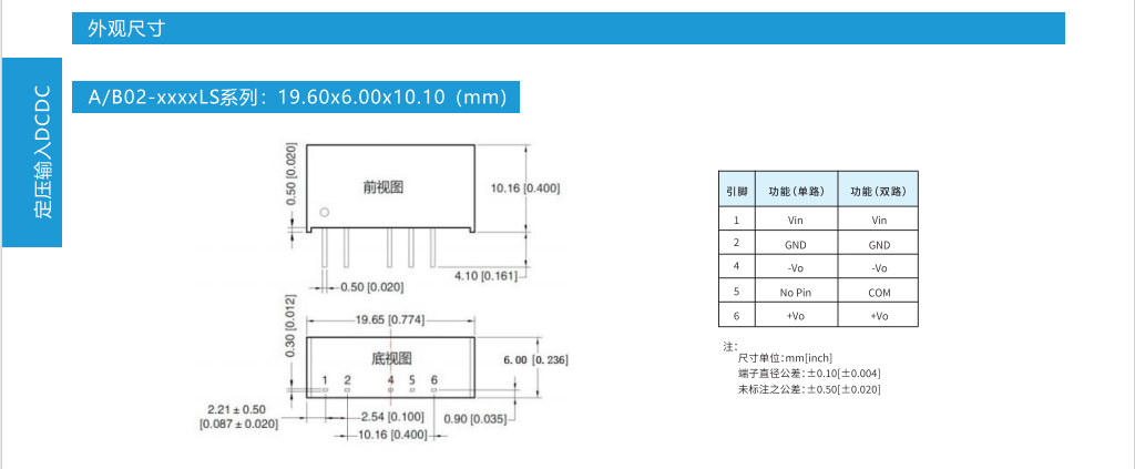 定压2W SIP6/SIP7封装隔离非稳压输出系列